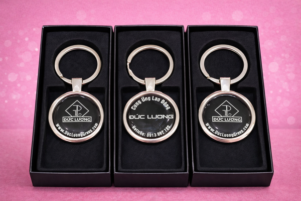 Móc khóa Mica/Kim loại: Vật phẩm nhỏ gọn, độ bền cao, luôn đi kèm với khách hàng.