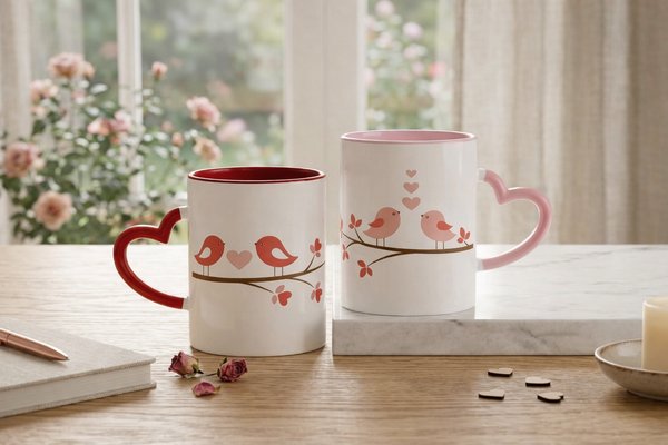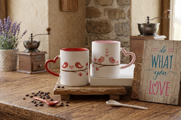 Bộ ly cặp với thiết kế quai cầm hình trái tim ghép đôi là minh chứng ngọt ngào cho tình yêu. Cùng nhau thưởng thức đồ uống trong những chiếc ly in hình kỷ niệm chung sẽ làm tăng thêm sự lãng mạn và gắn kết giữa hai người.