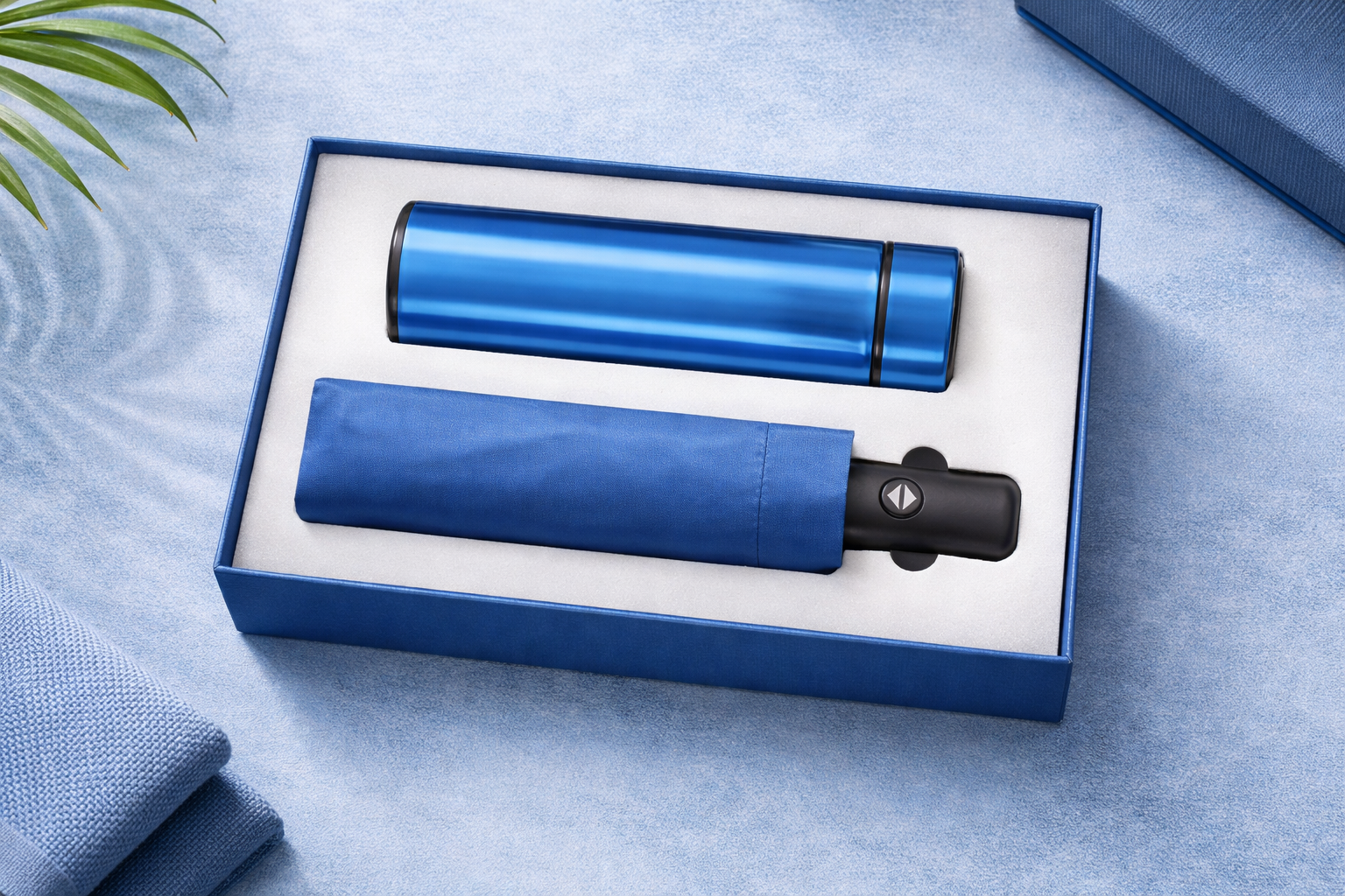 Bộ gift set dù và bình giữ nhiệt in logo doanh nghiệp